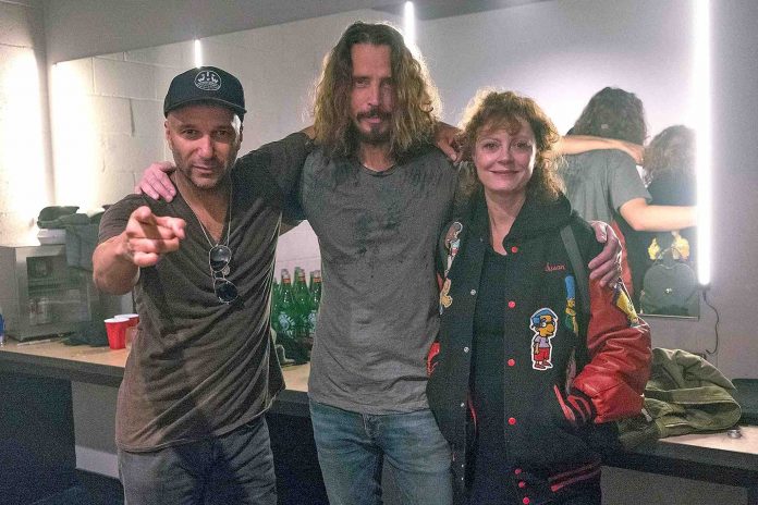 Tom Morello, Chris Cornell y la actriz Susan Sarandon en el camerino del «Anti-Inaugural Ball» del pasado viernes (vía Alternative Nation).
