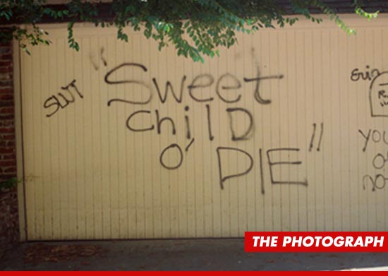 La instantánea en cuestión recoge lo que según la autora es el garaje de la casa de Rose con una pintada hecha con spray que dice “Sweet Child Of Die”. De acuerdo a Laura London, Rose habría hecho la pintada tras una pelea con su ex-esposa Erin Everly. Sin embargo, Rose, a través de sus abogados, ha negado que la propiedad fotografiada sea suya: