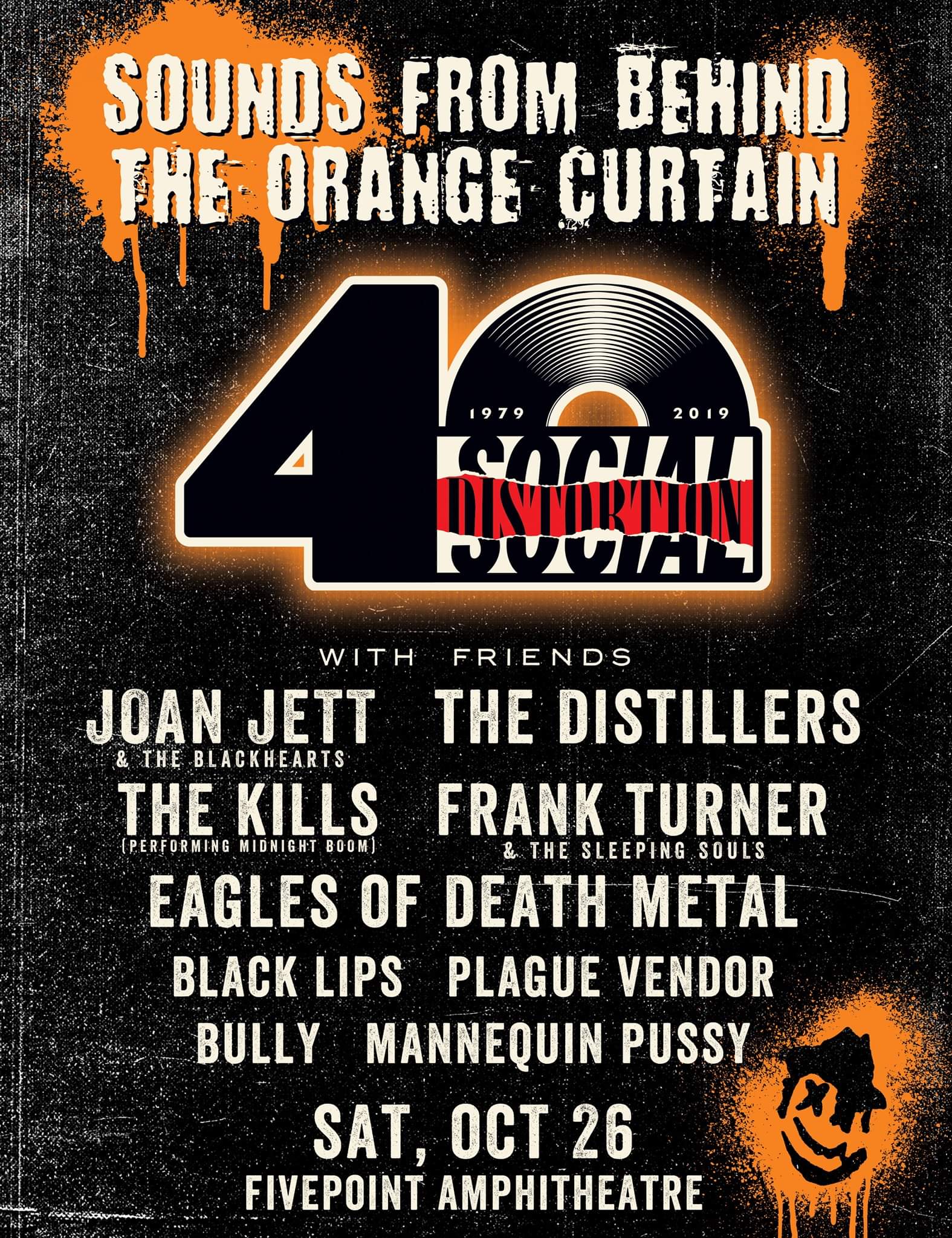 Social Distortion celebrarán el 26 de octubre su cuadragésimo aniversario como banda con un concierto en su Orange County natal. No estarán solos porque han preparado un cartel de relumbrón: Joan Jett & the Blackhearts, The Distillers, The Kills, Frank Turner, Eagles of Death Metal, The Black Lips, Plague Vendor, Bully y Mannequin Pussy.